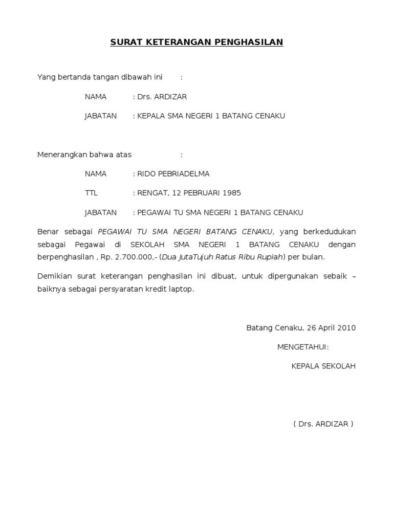 Surat keterangan penghasilan orang tua. Pastikan anda memiliki surat keterangan penghasilan kerja atau slip gaji untuk mempermudah administrasi. Surat keterangan penghasilan atau biasa disebut slip gaji adalah surat yang biasanya dikeluarkan oleh departemen keuangan perusahaan. Surat keterangan penghasilan orang tua. Nama lengkap orang tua ayah :